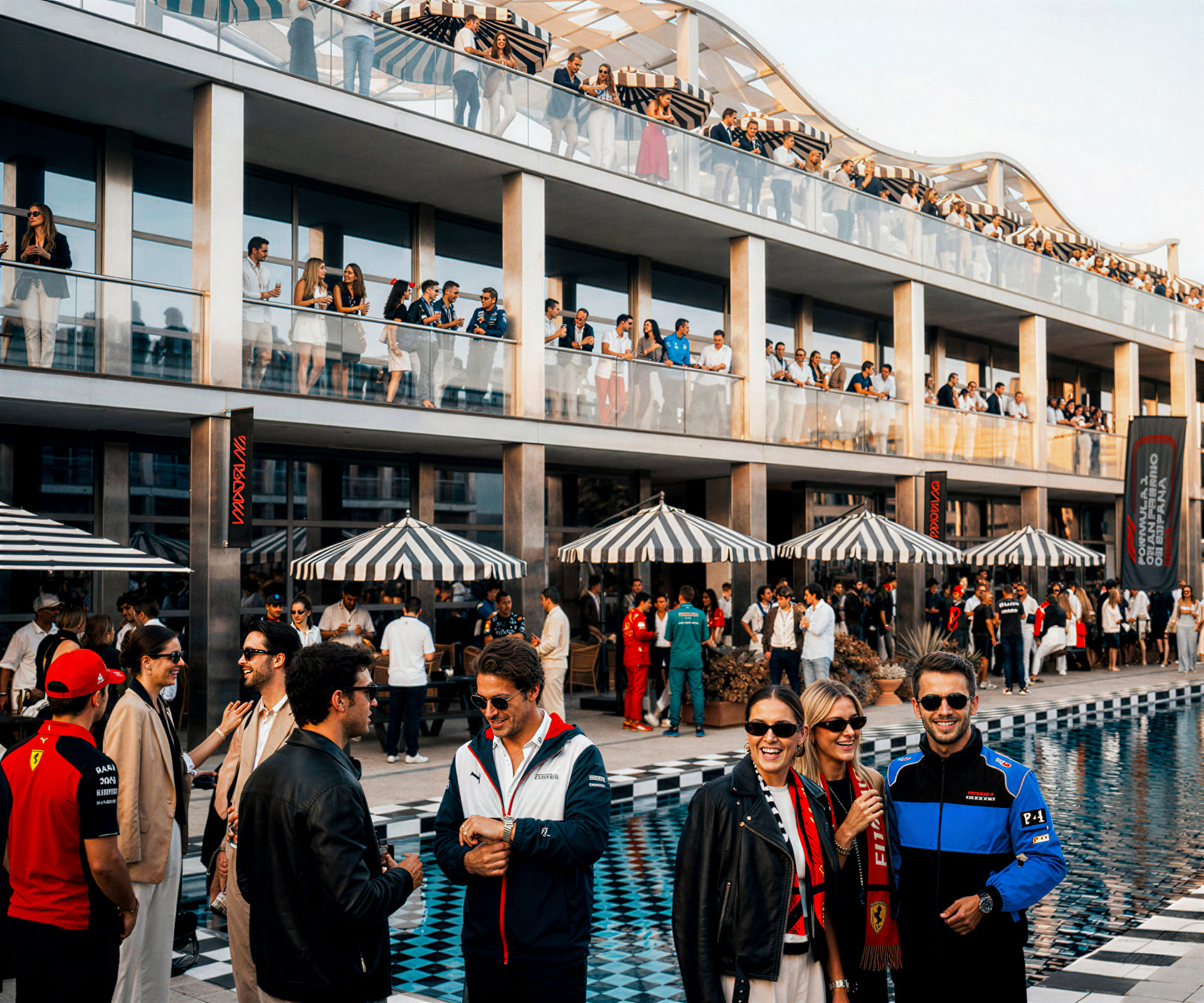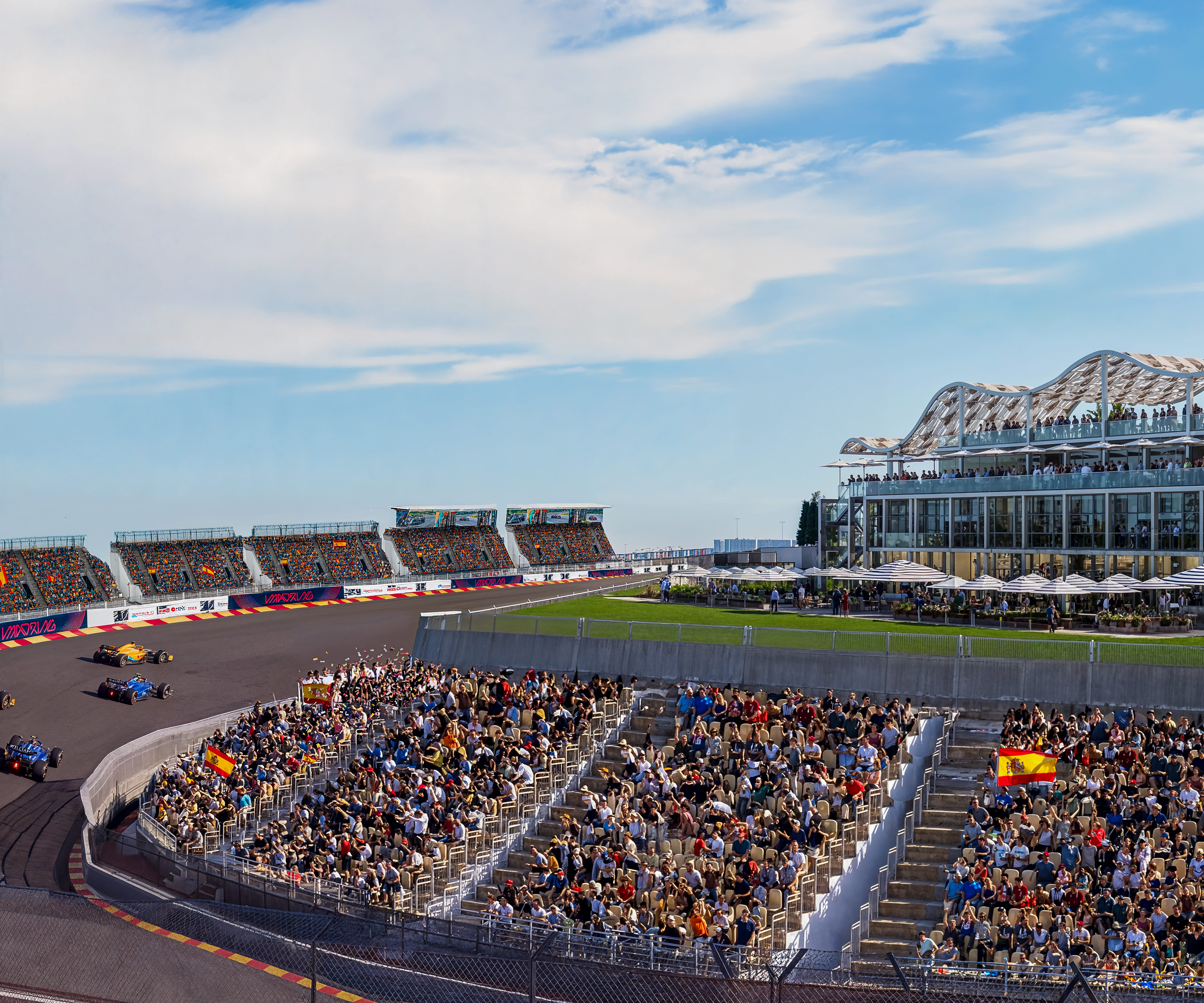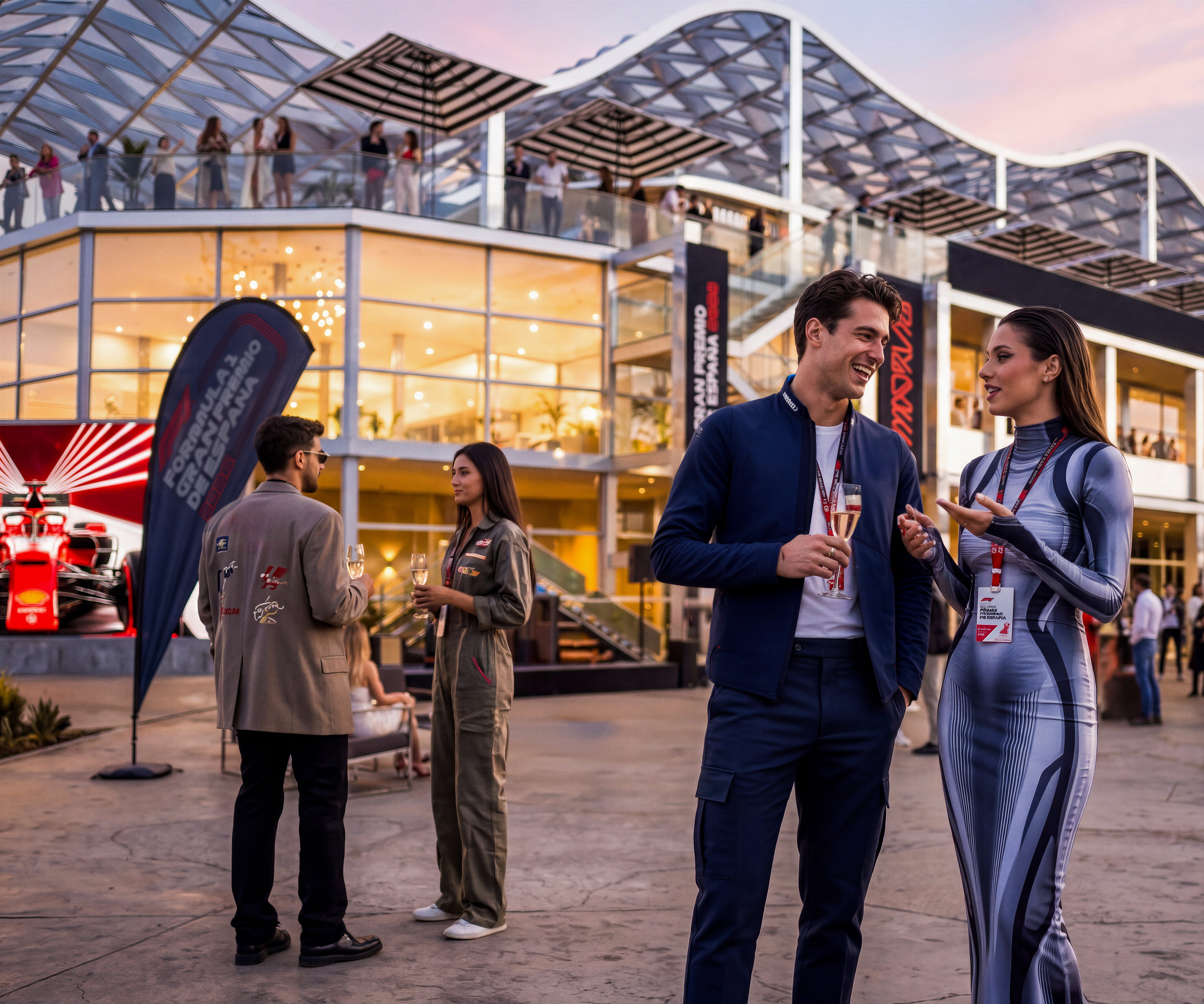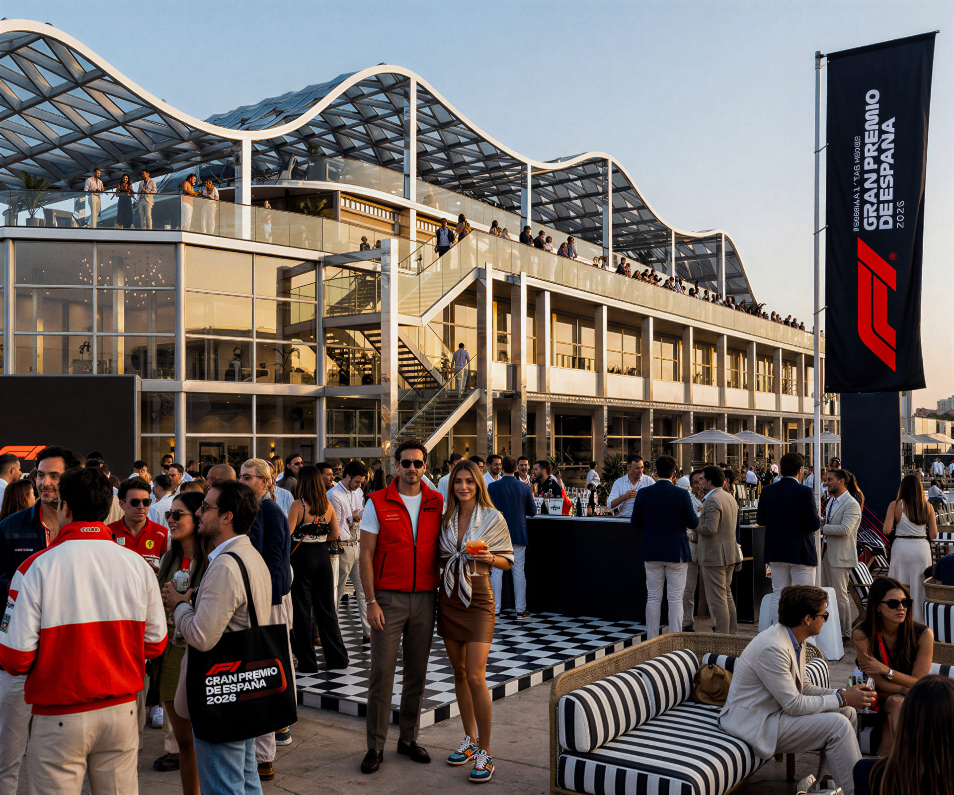 On Saturday, after qualifying, head to the exclusive Official Hospitality afterparty on the terrace, with stunning sunset views over Madrid. This multilevel clubhouse creates a glamorous yet comfortable social space, attracting a fashionable, sociable crowd seeking an elevated Spanish Grand Prix experience.