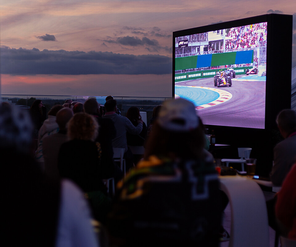 Un espacio dinámico con múltiples zonas donde los invitados disfrutan del restaurante, el rooftop y acceso al escenario principal de Official Hospitality. Sets de DJ en directo, anfitriones reconocidos, entrevistas exclusivas y pantallas con la retransmisión en directo de la carrera, creando una atmósfera de fiesta electrizante.